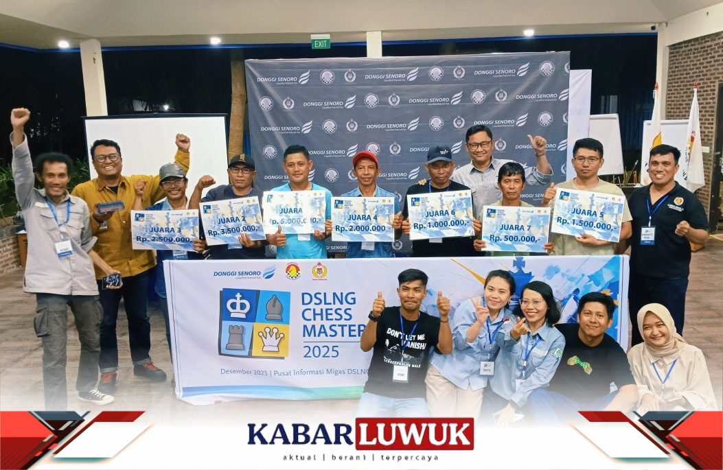 KABAR LUWUK – Turnamen catur DSLNG Chess Master 2025 yang digelar sejak 22-27 Desember 2025 di Pusat Informasi Migas DSLNG di Kecamatan Batui telah berakhir. Afrin Mulalat, pecatur asal Kecamatan Nambo keluar sebagai juara setelah di partai Grand Final berhasil mengalahkan pecatur asal Kecamatan Kintom, Mohammad Rum Adiputra dengan skor kemenangan dramatis 2-1. Dengan kemenangan ini, Afrin berhak atas hadiah uang tunai senilai Rp 5 juta, sementara M. Rum mendapatkan hadiah senilai Rp 3,5 juta.