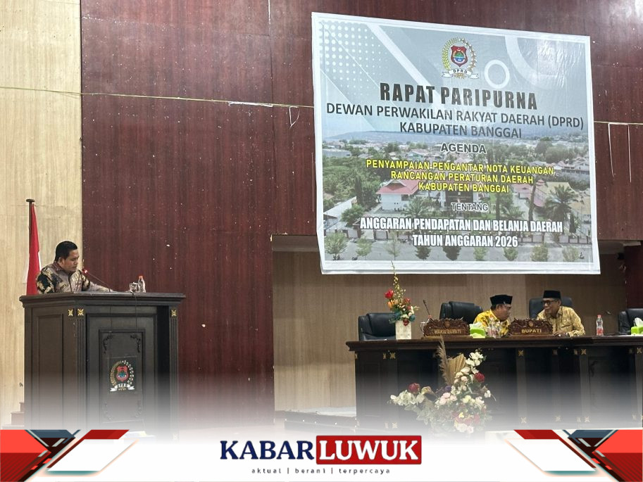 KABAR LUWUK — Fraksi Partai Gerindra DPRD Kabupaten Banggai menyampaikan pandangan resminya terhadap Nota Keuangan Rancangan APBD Tahun Anggaran 2026 dalam Rapat Paripurna, Selasa (25/11/2025). Dalam penyampaiannya, fraksi menyoroti penurunan signifikan pendapatan dan belanja daerah, lemahnya serapan anggaran 2025, serta sejumlah persoalan strategis lintas sektor.