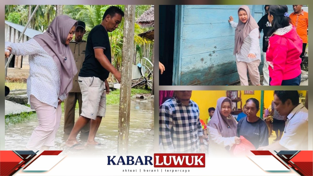 Usai penyerahan bantuan, putri Almarhum H.Murad Husain ini langsung mengunjungi kawasan pemukiman warga yang rusak diterjang banjir.