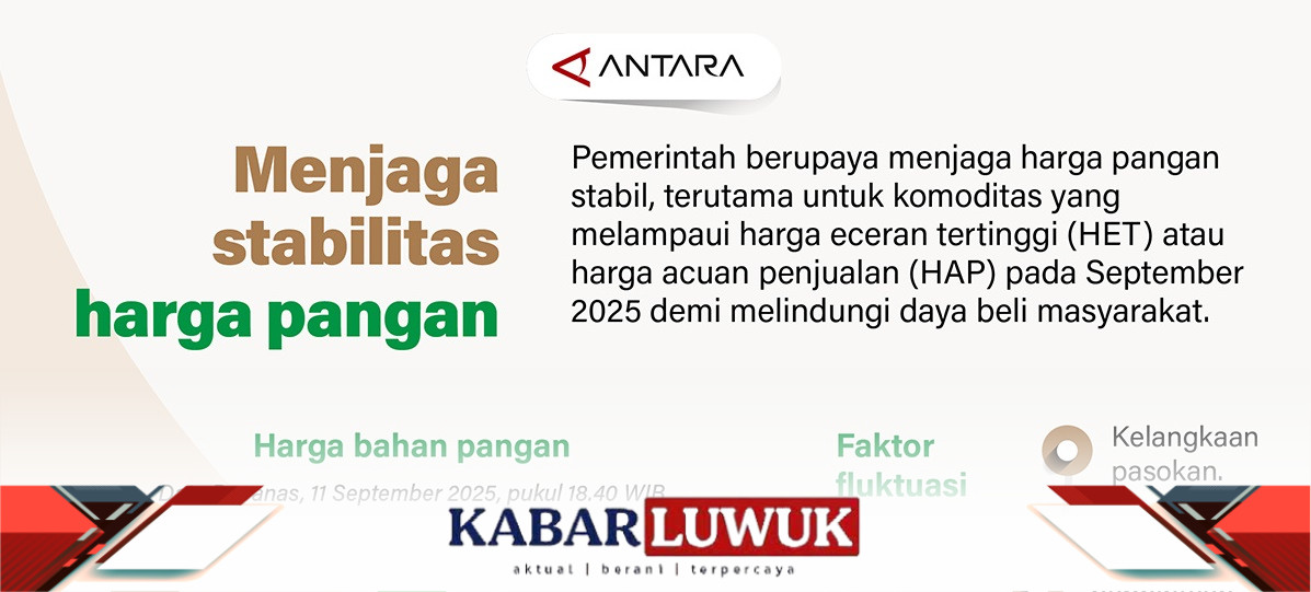 KABAR LUWUK – Pemerintah berupaya menjaga harga pangan stabil, terutama untuk komoditas yang melampaui harga eceran tertinggi (HET) atau harga acuan penjualan (HAP) pada September 2025 demi melindungi daya beli masyarakat. (ANTARA)