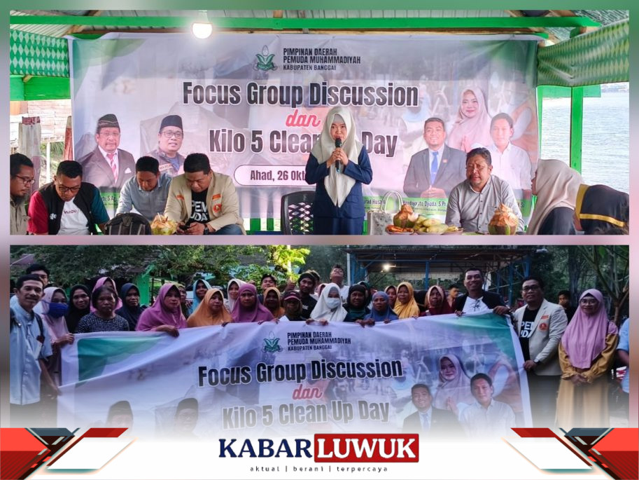 KABAR LUWUK – Pimpinan Daerah Pemuda Muhammadiyah (PDPM) Kabupaten Banggai menunjukkan kepedulian nyata terhadap isu kebersihan kota melalui kegiatan bertajuk “Kilo 5 Clean Up Day”, yang dilanjutkan dengan Focus Group Discussion (FGD) “Belanja Masalah” bersama para pahlawan kebersihan, Minggu (26/10/2025).