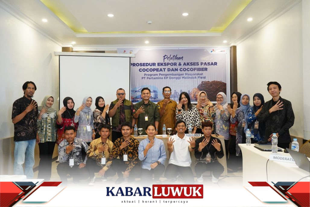 KABAR LUWUK – PT Pertamina EP Donggi Matindok Field (PEP DMF) kembali menegaskan komitmennya dalam mendorong kemandirian ekonomi masyarakat desa melalui penyelenggaraan Pelatihan Prosedur Ekspor dan Akses Pasar Cocopeat dan Cocofiber bagi BUMDes Nonong, Kecamatan Batui, Kabupaten Banggai. Pelatihan yang berlangsung selama dua hari pada 18–19 November 2025 ini menghadirkan narasumber dari UKM Eksporter Indonesia, yaitu Founder Dewi Harlas dan Co-Founder Tuhu Eko.