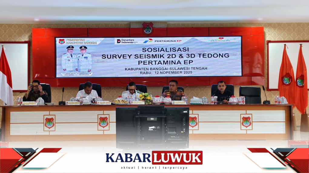 KABAR LUWUK – PT. Pertamina EP, melaksanakan kegiatan Sosialisasi Survei Seismik 2D & 3D diwilayah Kecamatan Toili Barat bertempat di Ruang Rapat Umum Kantor Bupati Banggai pada Rabu (12/11/2025) pagi.