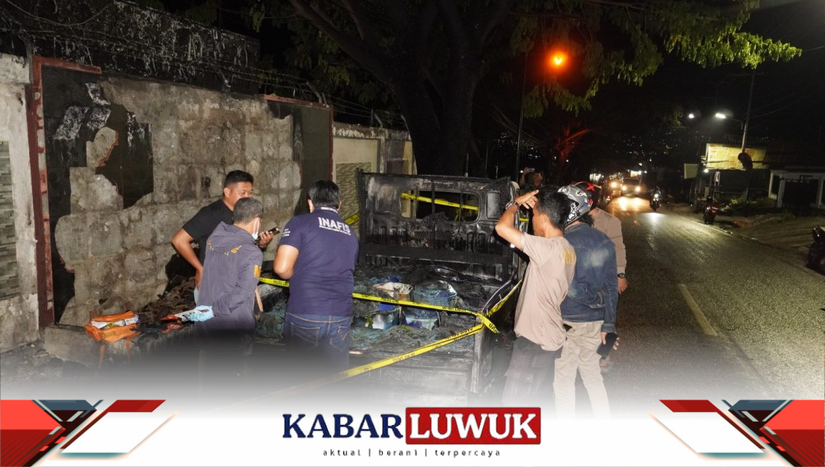KABAR LUWUK – Menerima informasi satu unit mobil Pick Up Suzuki Grand Max DN 8426 CR terbakar di depan Depot Pertamina Luwuk, Tim Unit Inafis Polres Banggai langsung mendatangi lokasi kejadian, Sabtu (8/11/2025) malam.