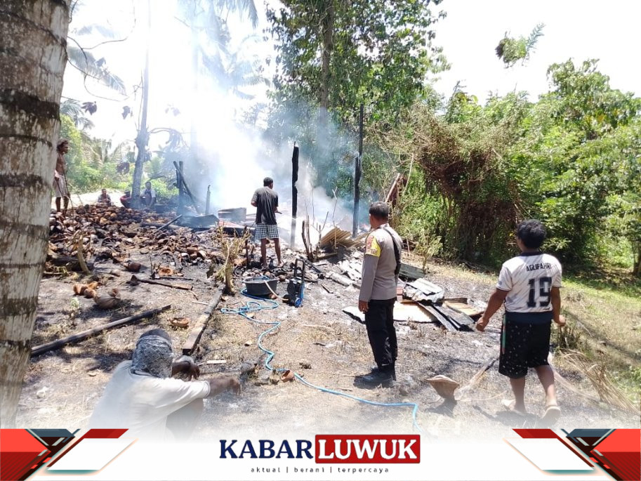 KABAR LUWUK – Polisi terjun ke lokasi kejadian kebakaran yang terjadi di tempat pembuatan kopra (para-para) di Desa Molino, Kecamatan Luwuk Timur, Kabupaten Banggai, Kamis (2/10/2025).