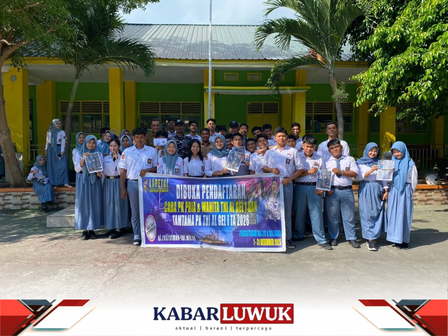 KABAR LUWUK — Dalam rangka meningkatkan minat dan motivasi generasi muda untuk bergabung sebagai prajurit TNI Angkatan Laut, Pos TNI AL (Posal) Luwuk di bawah jajaran Pangkalan TNI AL (Lanal) Palu melaksanakan sosialisasi penerimaan Calon Bintara (Caba) dan Calon Tamtama (Cata) PK TNI AL Gelombang I Tahun 2026 yang dibuka pada 1–31 Desember 2025. Kegiatan ini menyasar para pelajar di wilayah Luwuk dan dilaksanakan pada Selasa (02/12/2025).