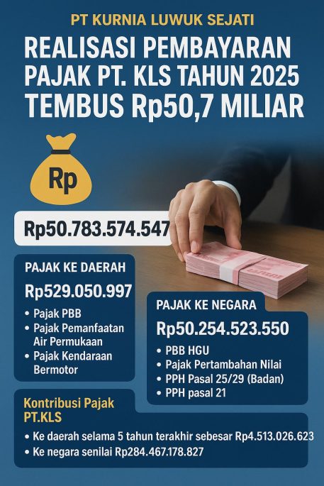 KABAR LUWUK – Sebagai perusahaan yang bergerak di usaha perkebunan Sawit, PT.KLS terus berkontribusi kepada negara melalui sektor pajak.